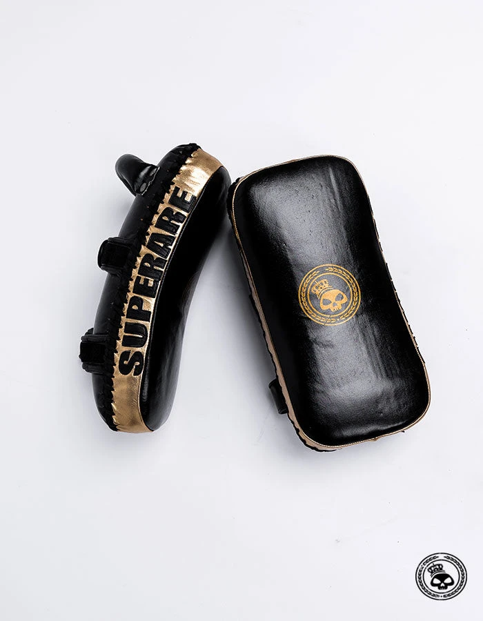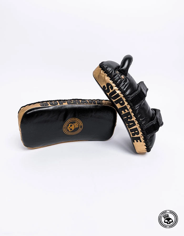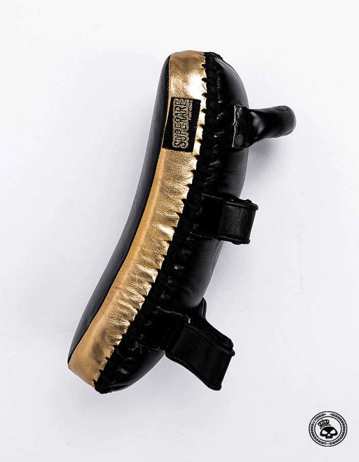 The newest addition to the Superare “Black Gold” collection. Our curved Thai pads are compact but can take a beating. Perfect for on the go training during these times that find us training outside more than normal.