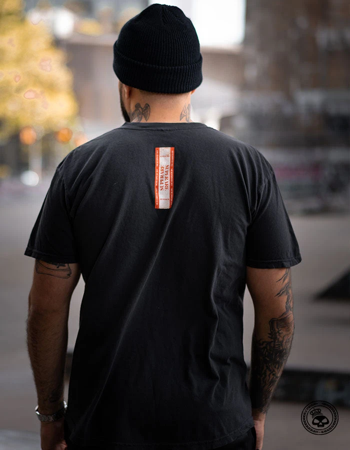- Ribbed set-in collar/Twill Label and Neck Tape/Double-Needle Hems